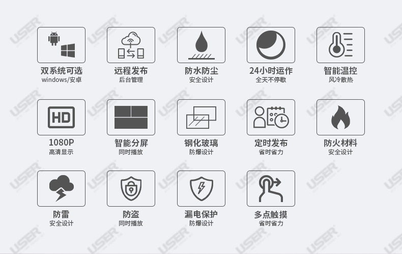 簡介:液晶尺寸:55英寸 1.整機采用風冷方案,達到IP65防護等級,防塵、防水,可完全安裝于室外; 2.高亮度的液晶顯示屏,配合自動光感控制系統陽光下可視; 3.具備溫控功能,在寬溫條件下可以正常工...