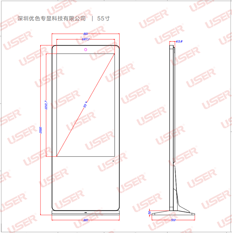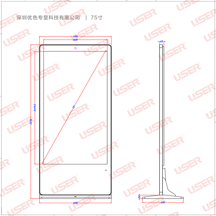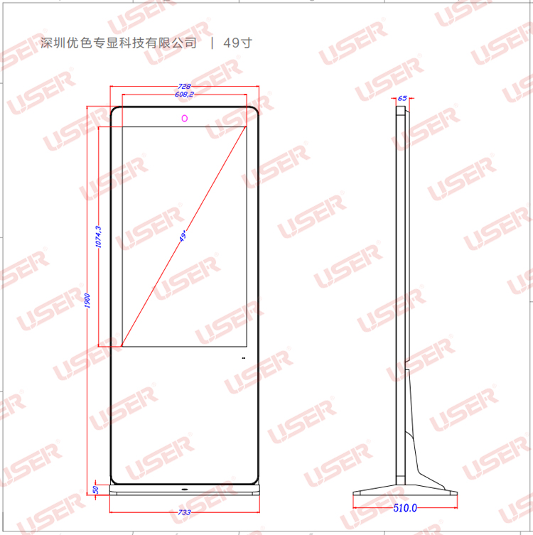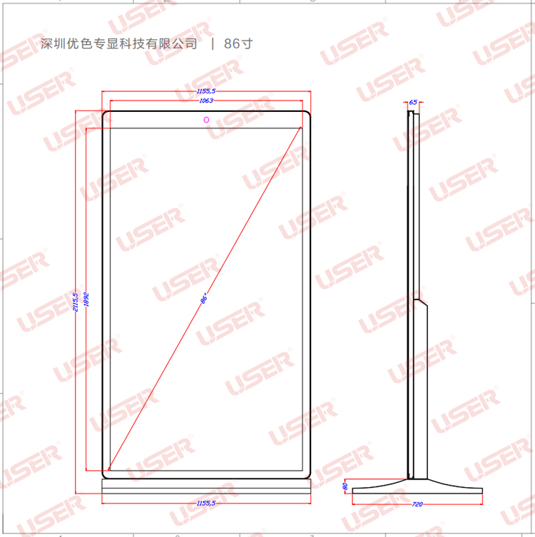 優色專顯US-AD430PLS/US-AD460PLS/US-AD490PLS/US-AD550PLS/US-AD650PLS/US-AD860PLS仿蘋果款落地立式液晶廣告機產品圖片,參數,尺寸。