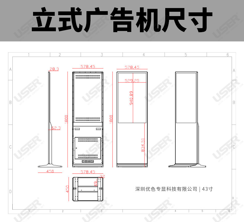 菜單產(chǎn)品中心Product center 液晶廣告機 壁掛式廣告機 落地立式廣告機 電梯超薄廣告機 車載廣告機 高亮廣告機 戶外廣告機 液晶拼接屏 專業(yè)液晶拼接屏 4K液晶拼接屏 廣告拼接屏 無縫液晶拼接屏 觸摸液晶拼接屏 LED顯示屏 觸控一體機 壁掛式觸控一體機 立式觸控一體機 斜面觸控一體機 智能家居觸控一體機 戶外觸控一體機 液晶電子白板 教育電子白板 會議電子白板 工控一體機 觸摸顯示器 紅外觸摸顯示器 電容觸摸顯示器 電阻觸摸顯示器 聲波觸摸顯示器 納米觸摸顯示器 液晶監(jiān)視器 專業(yè)級監(jiān)視器 4K監(jiān)視器 嵌入式監(jiān)視器 機架式監(jiān)視器 開放式監(jiān)視器 SDI監(jiān)視器 高亮監(jiān)視器 廣播級監(jiān)視器 工業(yè)顯示器 4K顯示器 機架式顯示器 開放式顯示器 醫(yī)療顯示器 KVM顯示器 指揮室顯示器 智慧校園產(chǎn)品 專業(yè)定制商顯 多屏廣告機 多功能觸控一體機 多功能廣告機 微信打印廣告機 魔鏡廣告機 透明廣告機 全息廣告機 條形屏廣告機 旋轉(zhuǎn)廣告機 裸眼3D廣告機 人工智能產(chǎn)品 顯示配套設(shè)備 拼接配套設(shè)備 廣告機播放盒 OPS播放盒 拼接支架 移動支架 相關(guān)軟件 吊頂支架 線材 木架 蜂窩箱 桌面底座 熱門產(chǎn)品 →優(yōu)色3.5mm超窄邊46寸液晶拼接屏→優(yōu)色49寸3.5mm超窄邊液晶拼接屏→優(yōu)色3.5mm超窄邊55寸液晶拼接屏 您的位置:首頁 → 公司產(chǎn)品 → 液晶廣告機 → 落地立式廣告機 43寸立式落地廣告機類別:落地立式廣告機 簡介:產(chǎn)品概述: ?高清:采用高清16:9全視角LCD顯示屏,分辨率為1920*1080 ?超薄:工業(yè)級外觀,設(shè)計合理,穩(wěn)固結(jié)實,最薄處28.3mm ?工藝:鋁合金氧化拉絲邊框,機身采用金屬噴涂的五金冷軋鋼板,... 在線咨詢 返回列表 產(chǎn)品說明 相關(guān)產(chǎn)品 65寸落地立式廣告機 55寸立式廣告機 50寸立式落地廣告機 43寸立式落地廣告機 43寸46寸49寸55寸65寸86寸仿蘋果款立式廣告機 55寸超薄立式廣告機
