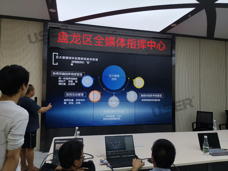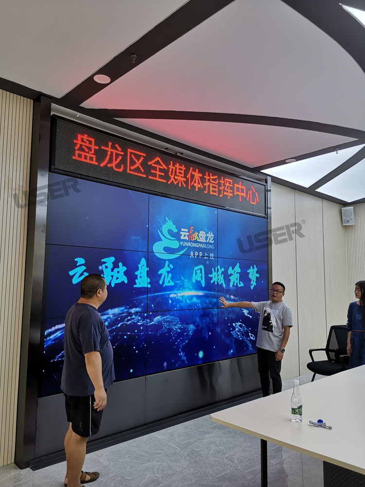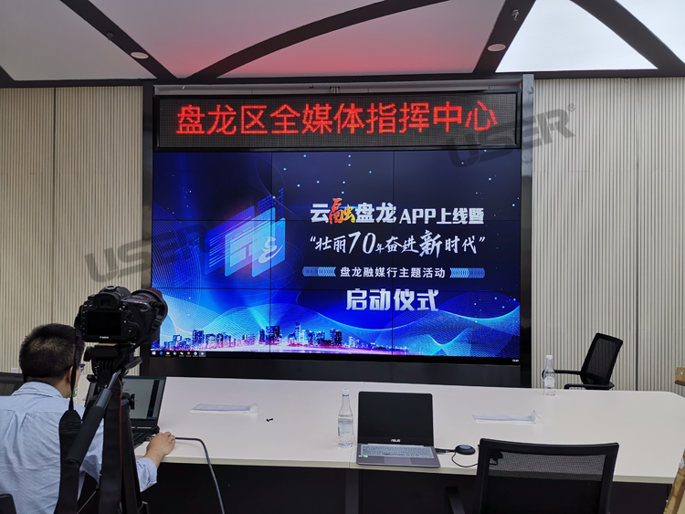 昆明市盤龍區(qū)融媒體中心55寸拼接屏項目竣工