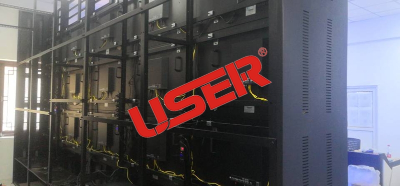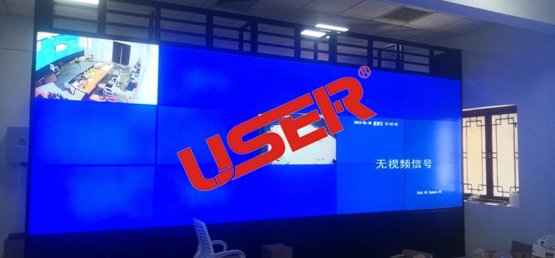 唐山落地機柜55寸1.7mm液晶拼接屏竣工