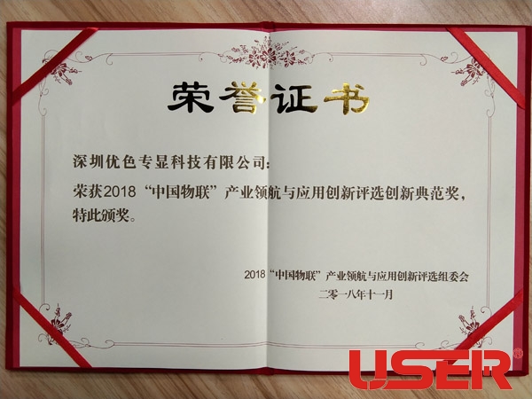 優色專顯榮獲2018中國物聯網產業領航與應用創新典范獎