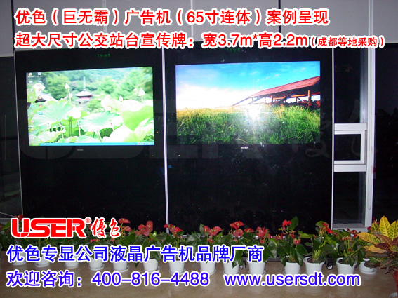 產(chǎn)品使用1臺65寸網(wǎng)絡(luò)版廣告機(jī),1臺65寸一體機(jī),整體生產(chǎn)運(yùn)輸安裝,是目前市場上體積最大、重量最重的廣告機(jī)。
